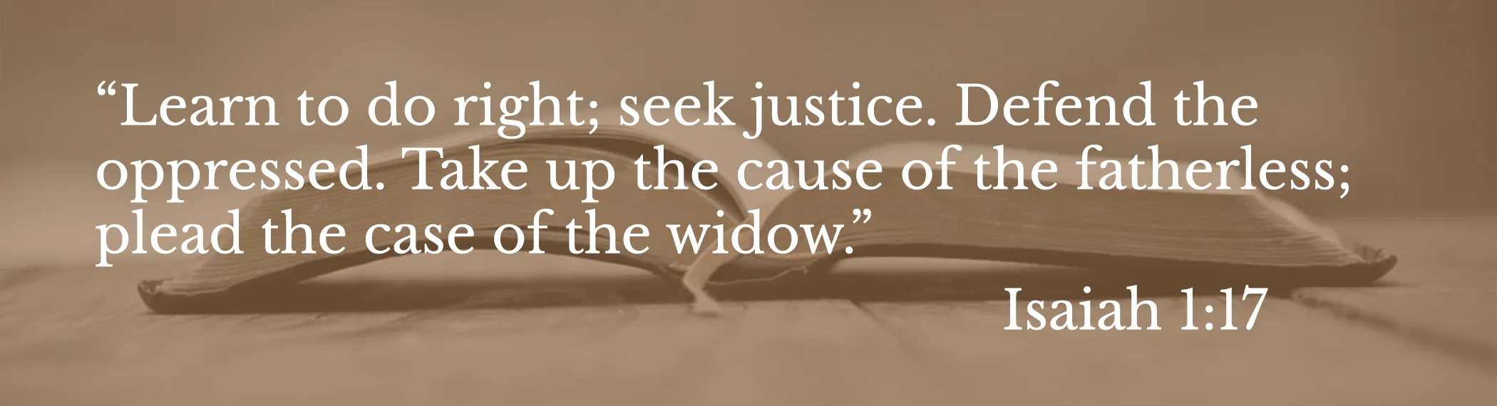 Our purpose is to honor God by using the gifts, talents, and resources God has trusted us with to demonstrate the love, kindness, and compassion of Jesus Christ to every person God trusts us to serve who has suffered injustice.